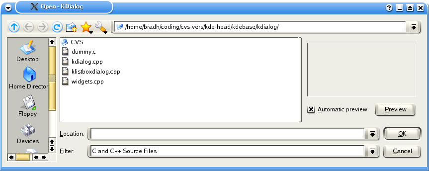 [bradh@rachel kdialog]$ kdialog --getopenfilename . /home/bradh/coding/cvs-vers/kde-head/kdebase/kdialog/Makefile.am [bradh@rachel kdialog]$ kdialog --getopenurl . file:/home/bradh/coding/cvs-vers/kde-head/kdebase/kdialog/Makefile.am |