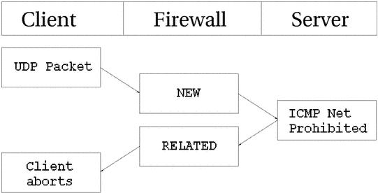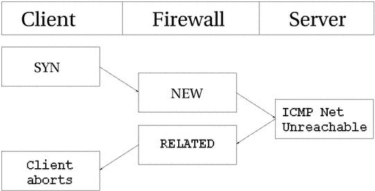 CONFIG_IP_NF_TARGET_REJECT - Добавляется действие REJECT, которое производит передачу ICMP-сообщения об ошибке в ответ на входящий пакет, который отвергается заданным правилом. Запомните, что TCP соединения, в отличие от UDP и ICMP, всегда завершаются или отвергаются пакетом TCP RST.