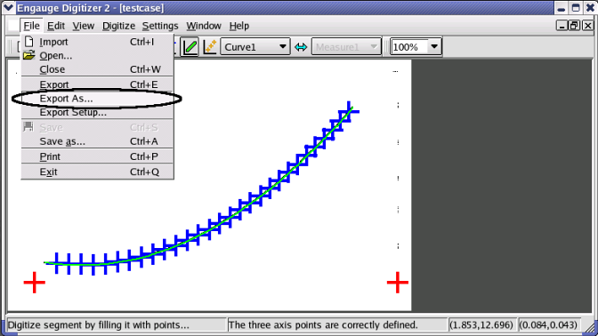 - Export the curve points into a tabular text file using the