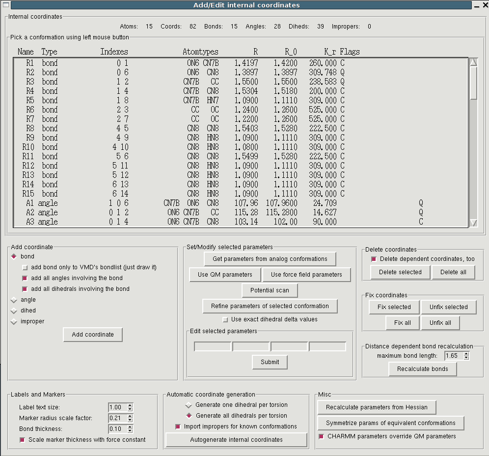 from the Hessian matrix (see below). "Edit->Intenal coordinates" opens